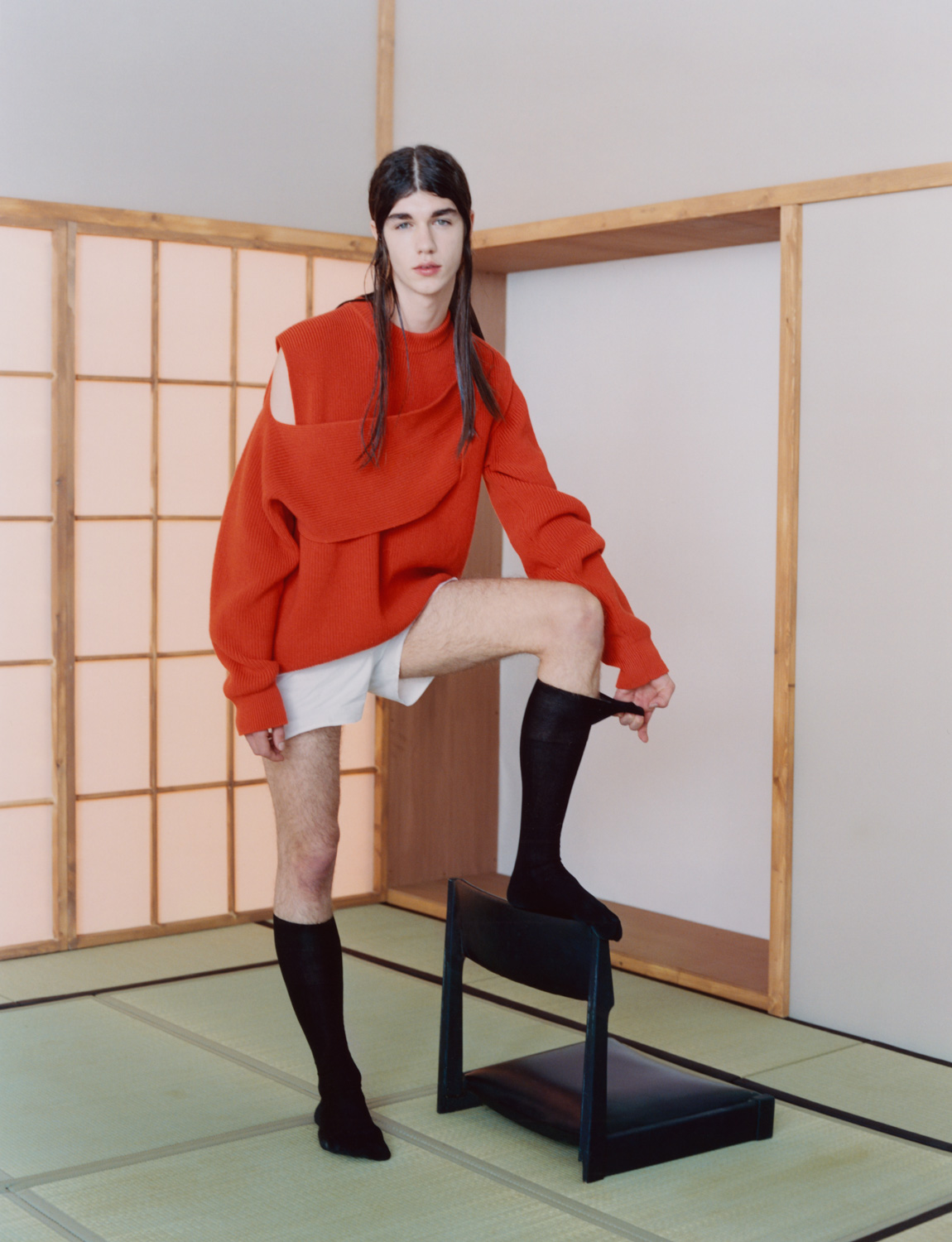 Styling by Paolo Zagoreo, hair styling by Franco Gobbi, make-up by Anne Sophie Costa, casting by Barbara Nicoli, set design by Miguel Bento. Models are Mica Tosi, Anahi Puntin, Erik Van Gils, Benno Bulang, Oscar Joyce and Yang Hao.